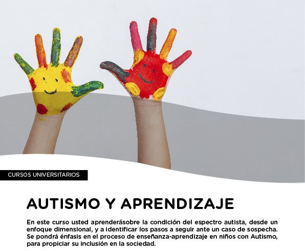 En este curso usted aprenderá, sobre la condición del espectro autista, desde un enfoque dimensional, a identificar los pasos a seguir ante un caso de sospecha. Se pondrá énfasis en el proceso de enseñanza aprendizaje en niños con Autismo, para propiciar su Inclusión en la sociedad.