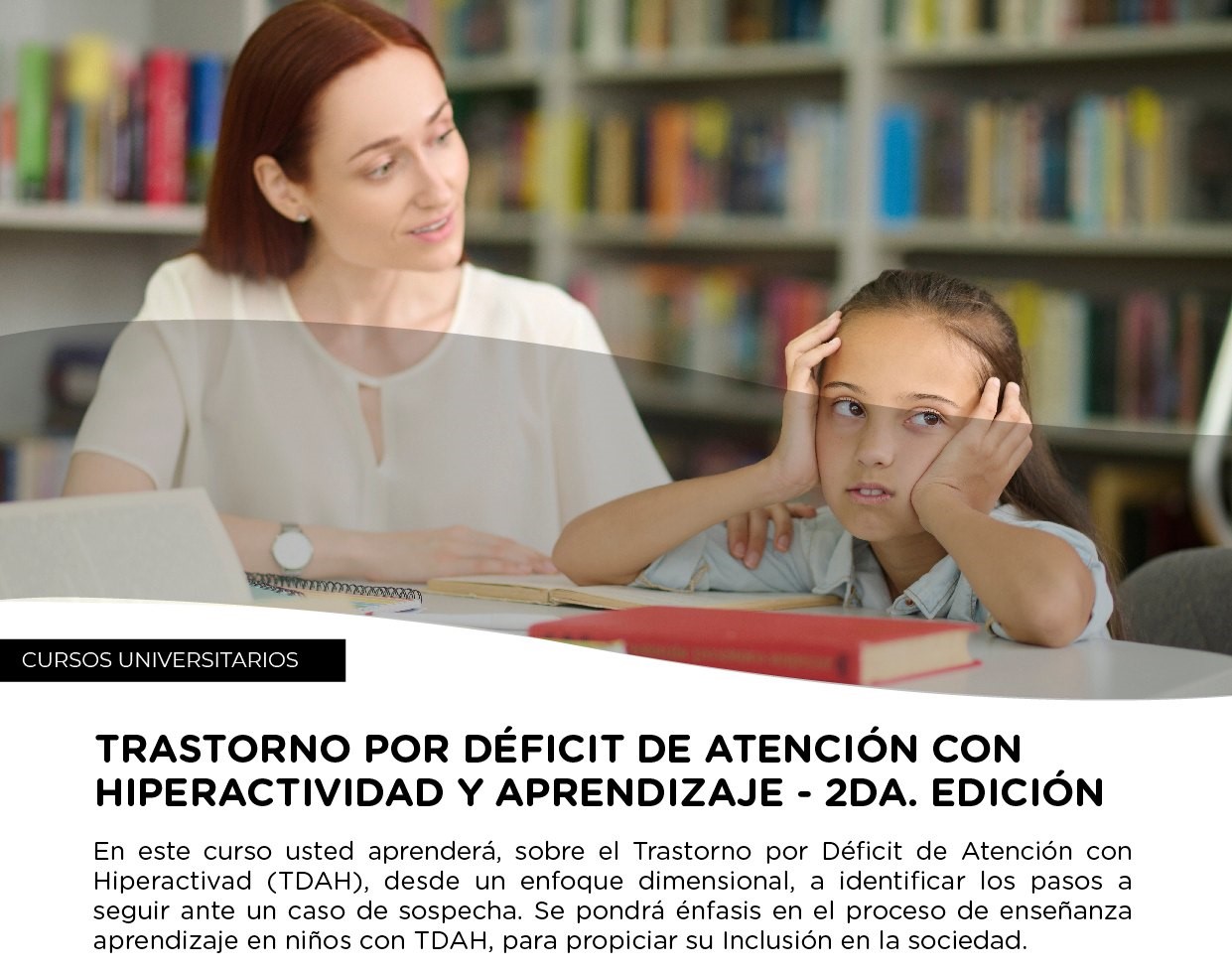 En este curso usted aprenderá, sobre el Trastorno por Déficit de Atención con Hiperactivad (TDAH), desde un enfoque dimensional, a identificar los pasos a seguir ante un caso de sospecha. Se pondrá énfasis en el proceso de enseñanza aprendizaje en niños con TDAH, para propiciar su Inclusión en la sociedad.